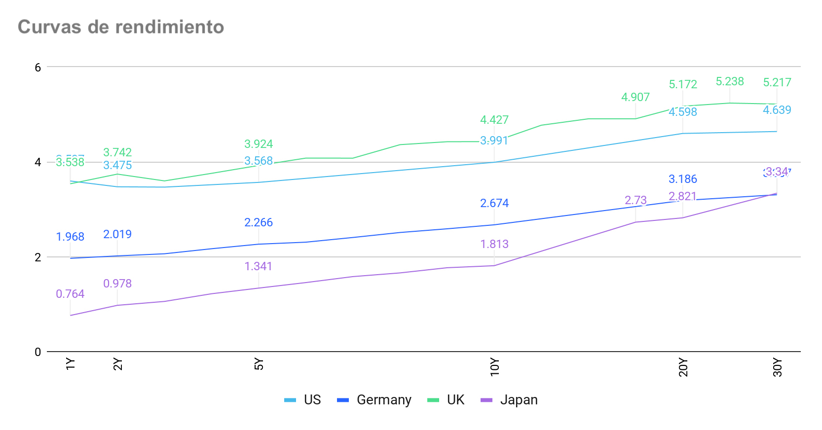 En los mercados de bonos de la eurozona, la confianza de los inversores se ha visto más influida por las diferencias en las expectativas de tipos entre la Fed y el BCE. A principios de semana, los rendimientos de los bonos de la zona euro bajaron ligeramente, pero los precios del mercado sugieren que los inversores anticipan que el Banco Central Europeo mantendrá los tipos de interés en los niveles actuales, al menos hasta finales de año.