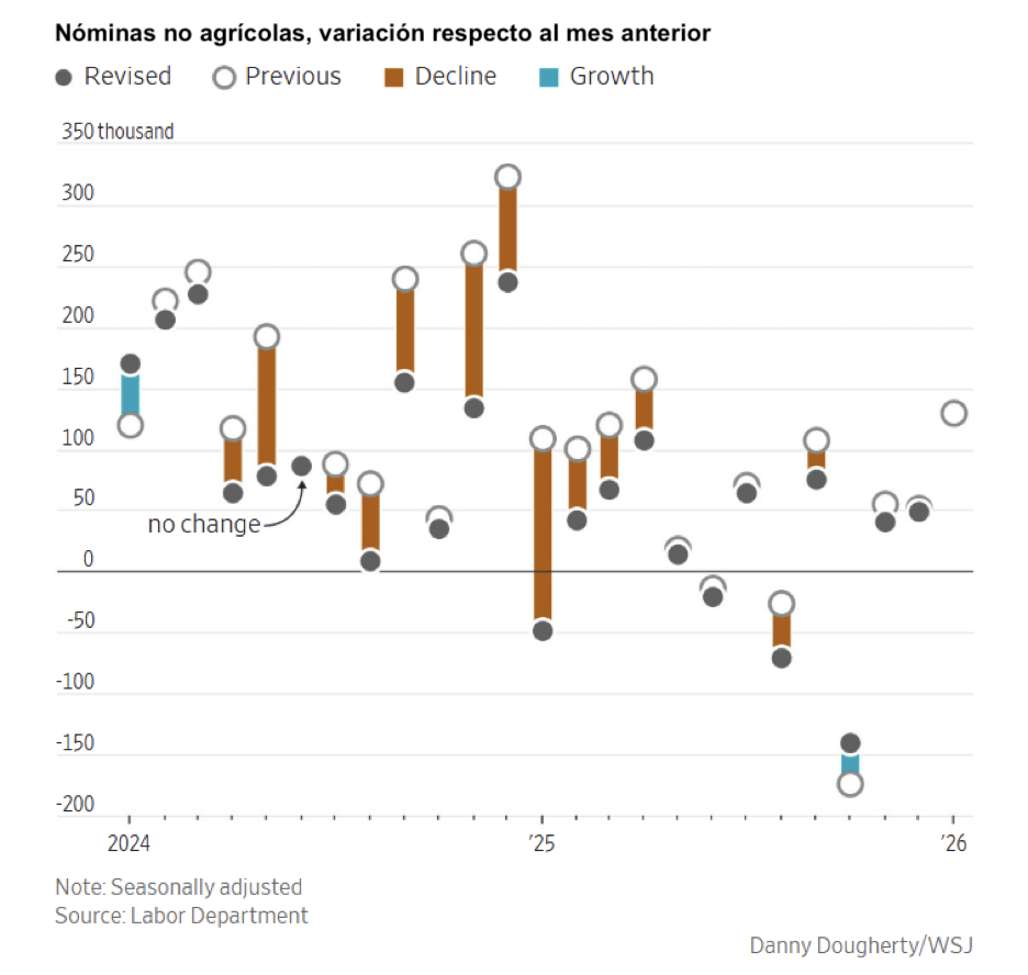 Algunos analistas se mostraron cautos, atribuyendo una parte considerable de la sorpresa al alza de enero a cambios metodológicos en la estimación de la creación neta de empresas, más que a una fortaleza económica genuina. Según señalaron, este ajuste impulsó el crecimiento del empleo en enero en aproximadamente 70.000 puestos en relación con diciembre. Otros analistas interpretaron el informe como de corte restrictivo, considerándolo una validación de la resiliencia económica y apuntando al inicio de una posible recuperación. Además, los analistas indicaron que el informe respalda la opinión predominante de que es poco probable que el FOMC, bajo la presidencia de Powell, vuelva a recortar los tipos.