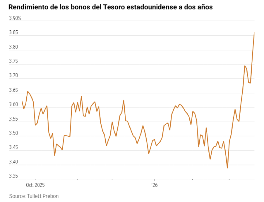 El rendimiento del bono del Tesoro estadounidense a dos años, sensible a las variaciones de la inflación y de las expectativas de tipos de interés, alcanzó el 3,960 %, su nivel más alto desde agosto de 2025. No obstante, posteriormente se moderó y cerró la sesión con un aumento de +2,8 pb hasta el 3,807 %. En contraste, el bono estadounidense a 10 años descendió -0,1 pb hasta situarse en el 4,264 %, tras haber alcanzado anteriormente su nivel más alto desde finales de agosto. Por su parte, el rendimiento del bono estadounidense a 30 años retrocedió -4,3 pb hasta el 4,843 %.