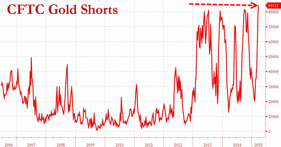 With Gold traders at all time short levels of gold contracts as the chart clearly shows , traders are not betting this way and they very well may get caught off side
