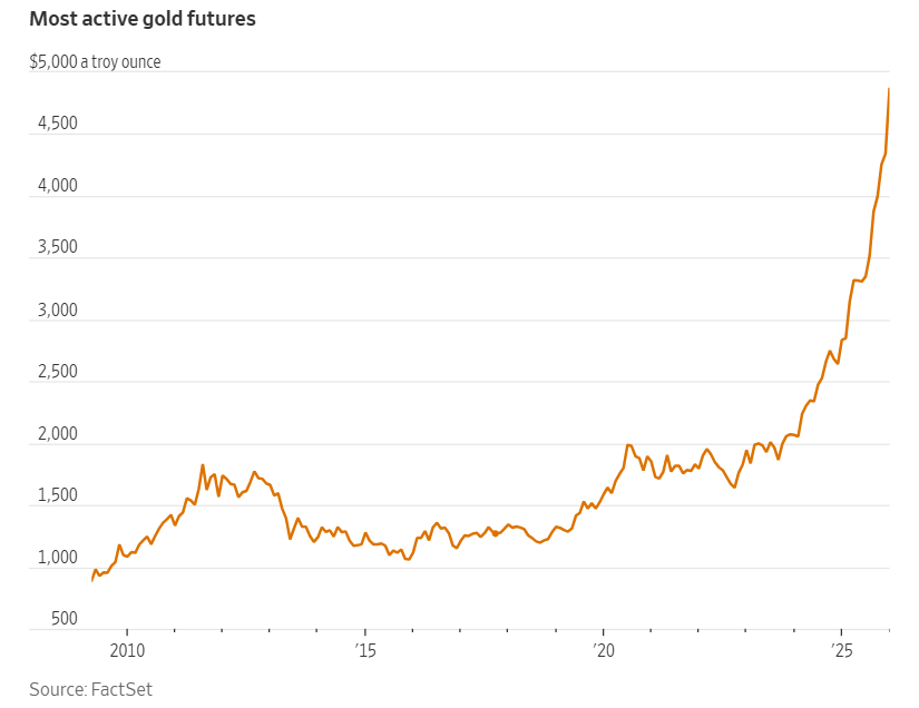 Spot gold was +4.42% over the last seven days and is +12.00% YTD due to a combination of factors such as escalating geopolitical tensions between the US and Europe, attacks on Fed independence, and expectations of increased central bank purchases.