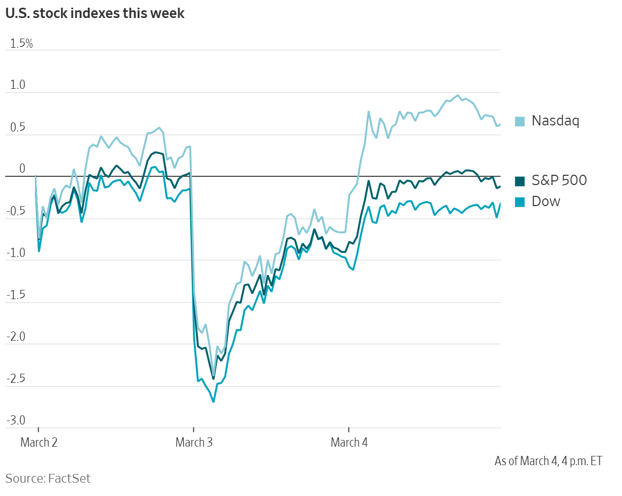 On Wednesday stocks advanced after a news report that Iran had signalled a willingness to talk and a pledge by President Donald Trump to steady oil markets. The Nasdaq Composite gained 290.79 points, or +1.29%, to 22,807.48. The Dow Jones Industrial Average rose, or +0.49%, to 48,738.98. The S&P 500 added 52.83 points, or +0.78%, to end at 6,869.46 points despite energy sector stocks falling, having climbed over the past few days on rising oil price fears. Over the past seven days, the S&P 500 is -1.10%, the Dow Jones -1.5%, and the Nasdaq Composite -1.49%.
