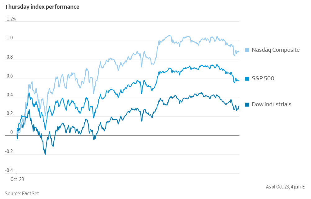 On Thursday, major US equity indices ended the day higher. The Nasdaq Composite advanced by +0.89%, the Dow advanced by +0.31%, and the S&P 500 by +0.58%.