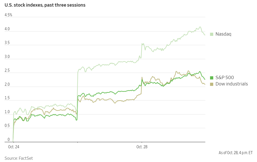 Companies reporting on Wednesday, 29th October: Alphabet, Microsoft, Meta Platforms, ADP, American Electric Power, Boeing, Caterpillar, Centene, Chipotle Mexican Grill, CVS Health, eBay, Etsy, Fiverr International, Kraft-Heinz, Mercedes-Benz Group, MGM Resorts International, Phillips 66, ServiceNow, Starbucks, Teladoc Health, Verizon, Adidas