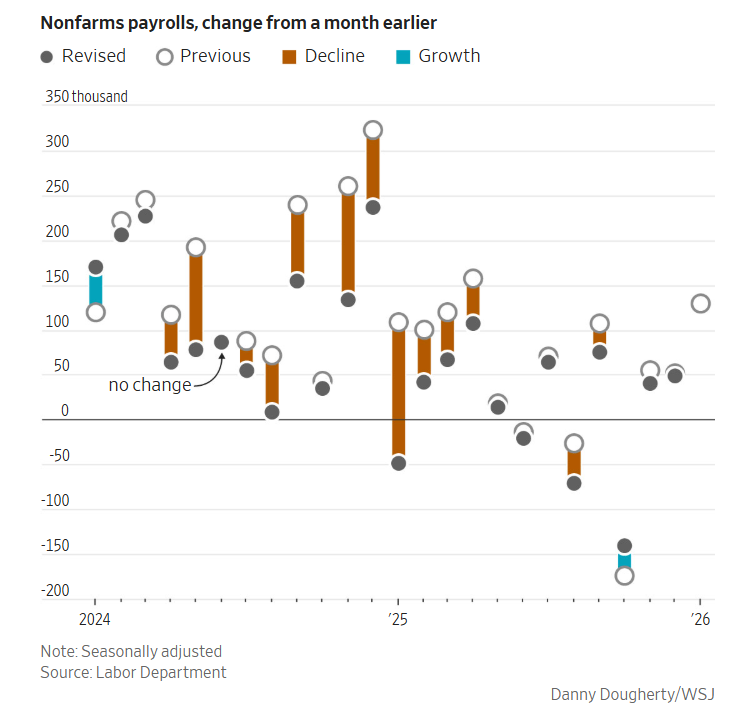 January NFP. According to the Bureau of Labor Statistics, headline nonfarm payrolls increased by 130,000, substantially exceeding the consensus forecast of 70,000. Private payrolls rose by 172,000, compared to the anticipated 75,000, marking the highest figures since December 2024.