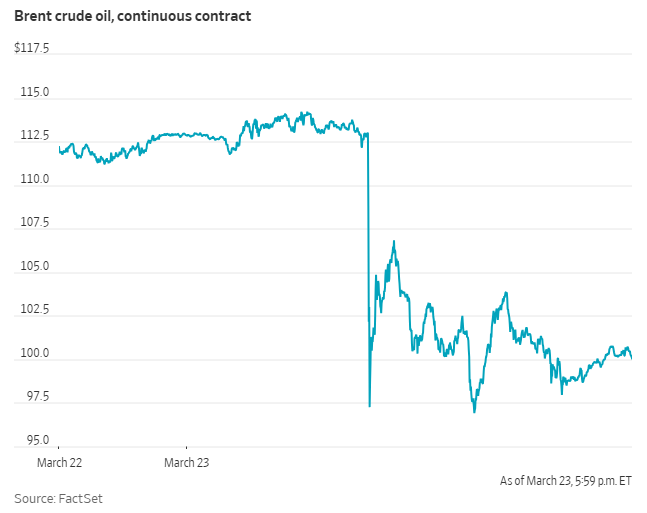 Brent crude -8.66% to $100.06 a barrel